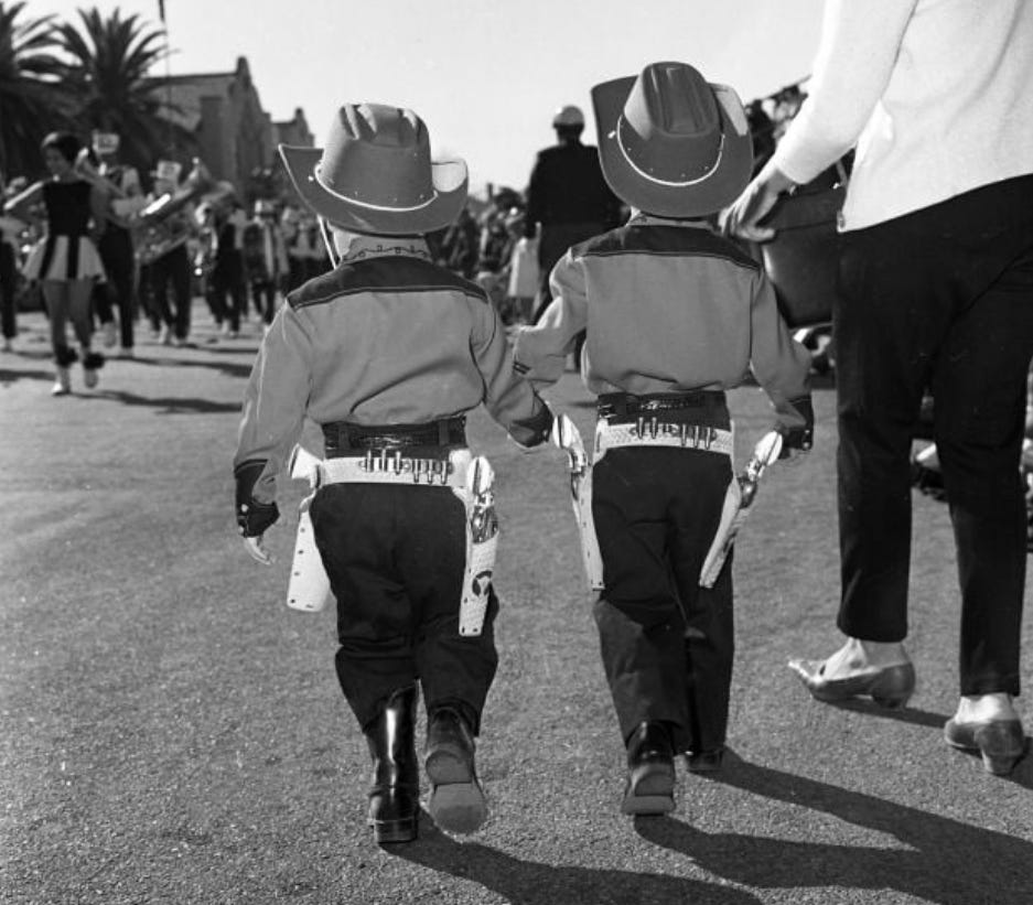 “Girls were allowed to wear long pants to school the three days before the festival. Of course, that was ‘back in the day’ when dress codes required girls to wear skirts and dresses. And most of the grade school boys wore holsters with play guns in them.”